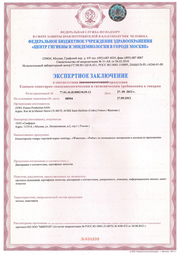 Сертификаты - Официальный дилер PARKER в Новокуйбышевске